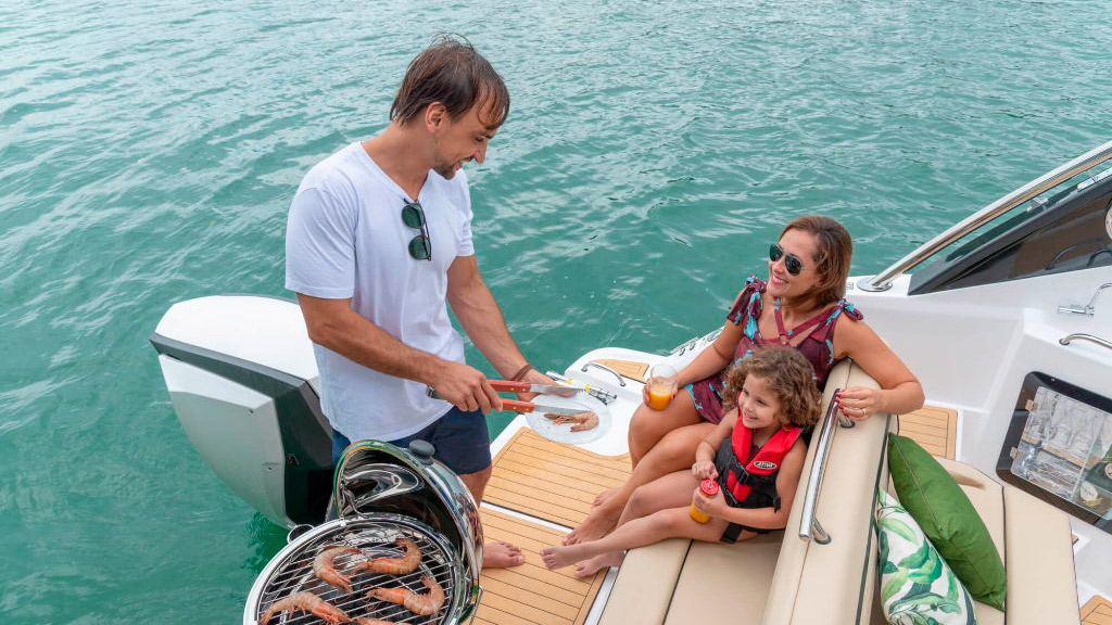 O novo conceito tem um grande diferencial: mantém o espaço da plataforma para atender o desejo do consumidor brasileiro que preza por essa área de lazer no barco, também na opção outboard.