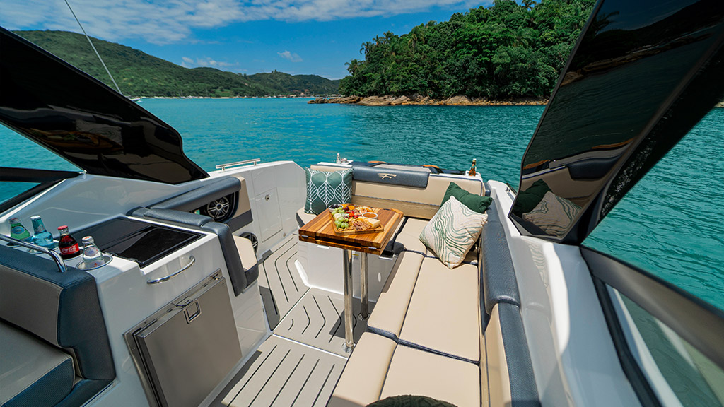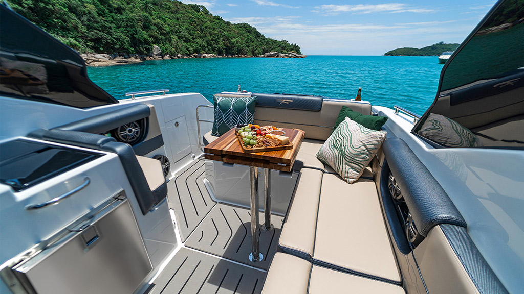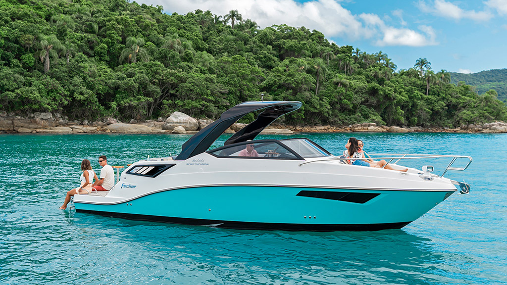 Elevando o conceito de lancha 30 pés, a Focker 300 envolve os sentidos com uma proposta de navegação moderna e tecnológica, através de um novo sistema de automação. Inspire-se com o design imponente e expressivo em cada detalhe, aproveite a liberdade do navegar na proa rebaixada e acomode-se na cabine completa do novo barco da nossa linha Cruiser.